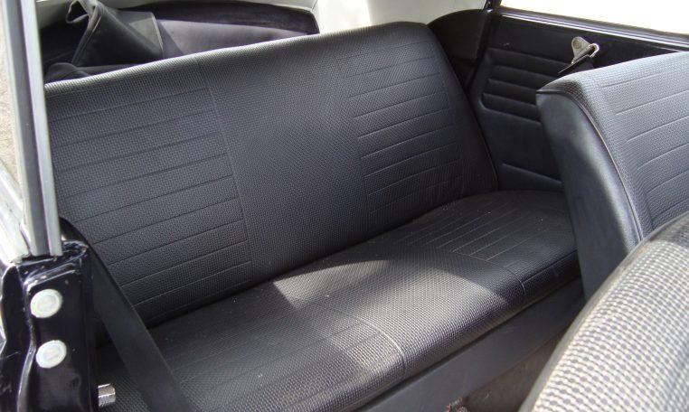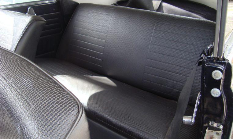 With a refreshed colour of Metallic Very Dark Blue/Black paintwork, fitted with a very nice original style Black vinyl interior. Also fitted with a recent new matching original Black vinyl white headliner and new padding.